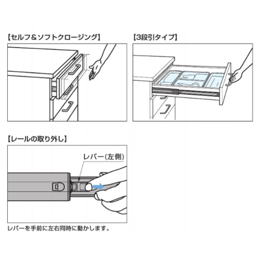 【スライドレール 3段引 セルフ&ソフトクロージング機構付き】