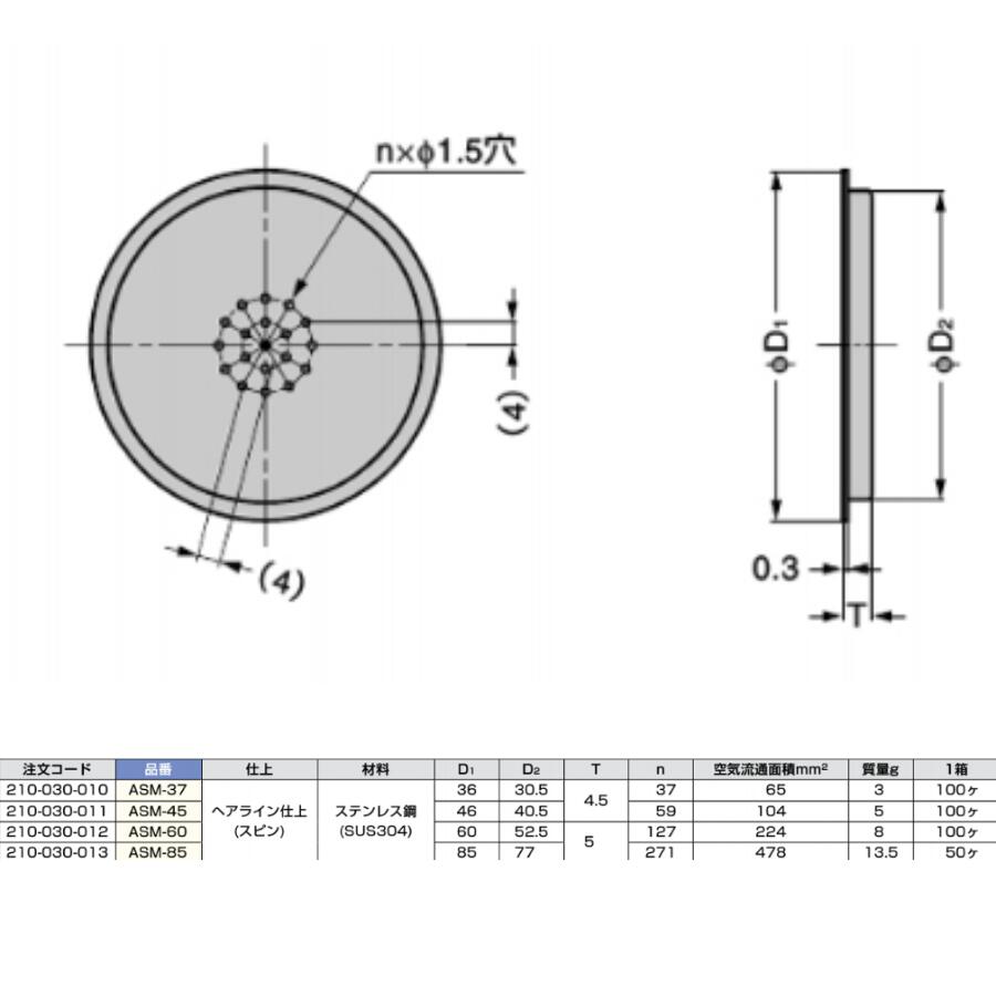スガツネ工業 ランプ印 ステンレス鋼製空気孔 ASM型 ASM-60