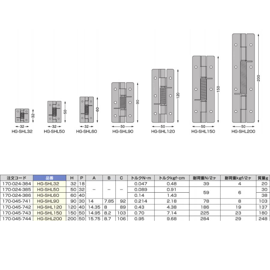 スガツネ LAMP 170045743 ステンレス鋼製スプリング蝶番 HG-SHL150