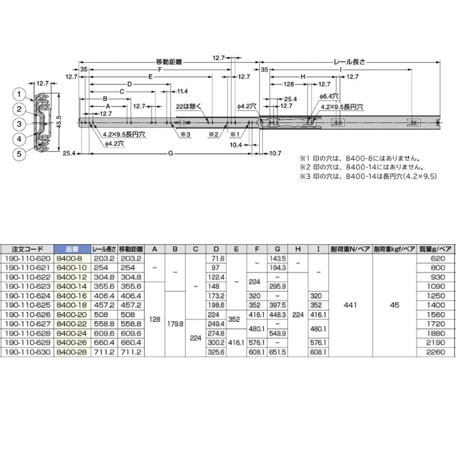 SUGATSUNE スガツネ工業 スライドレール 8400 レール長さ:移動距離:249.4:352:480.1:224:480.1 190-110-627 8400-22 | LAMP K&V 建築金物 家具金物 部品 金具 金物 部品交換 スライドレール 完全スライド 取付金具 引き出し チェスト デスク 家具 DIY 3段引