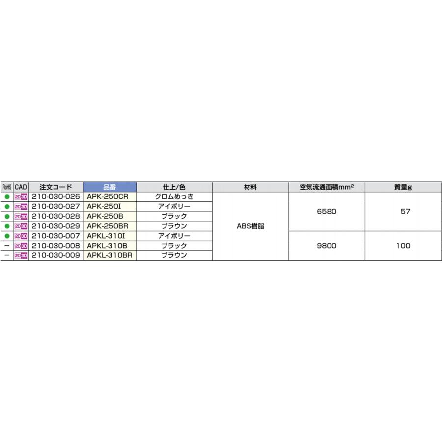 樹脂製角型空気孔 (品番: APK-250B)