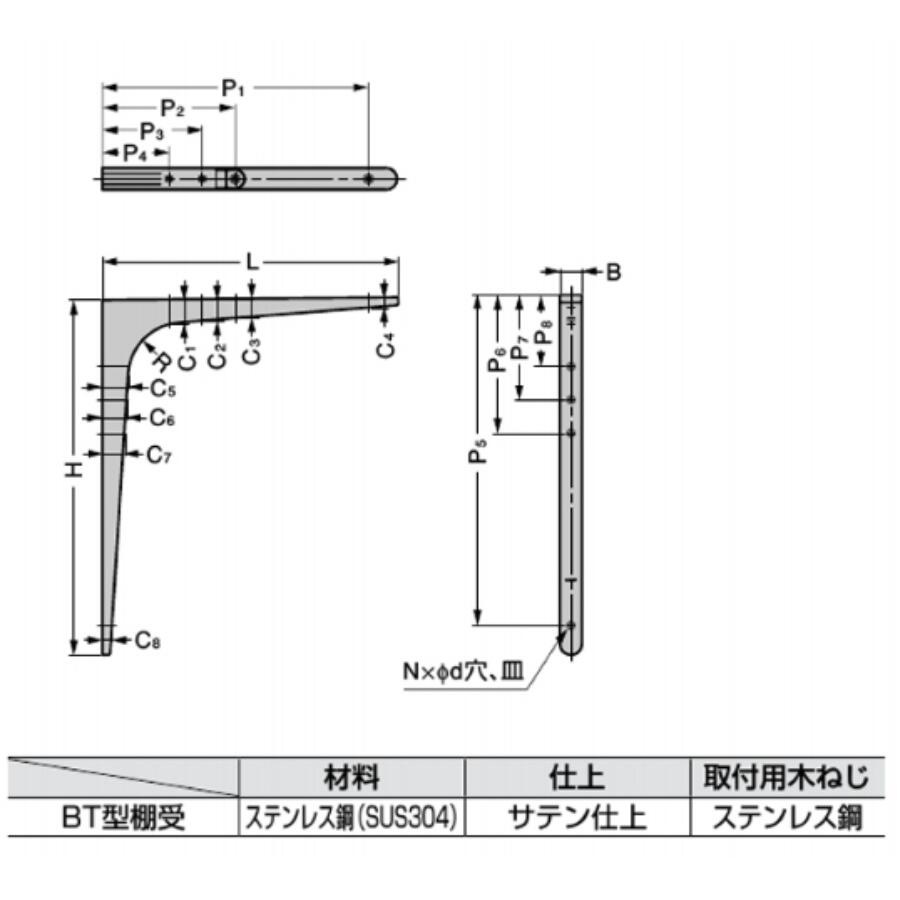 補強金具, ステンレス製金具, 棚受金具, サテン仕上金具, BT-240。
