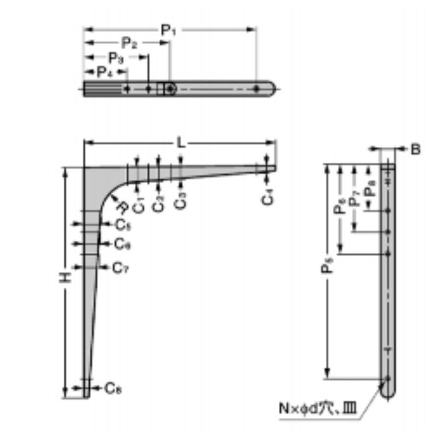 棚受として使用する際の荷重による傾きを防ぐため、開き角度が90°より少し広くなっています。
