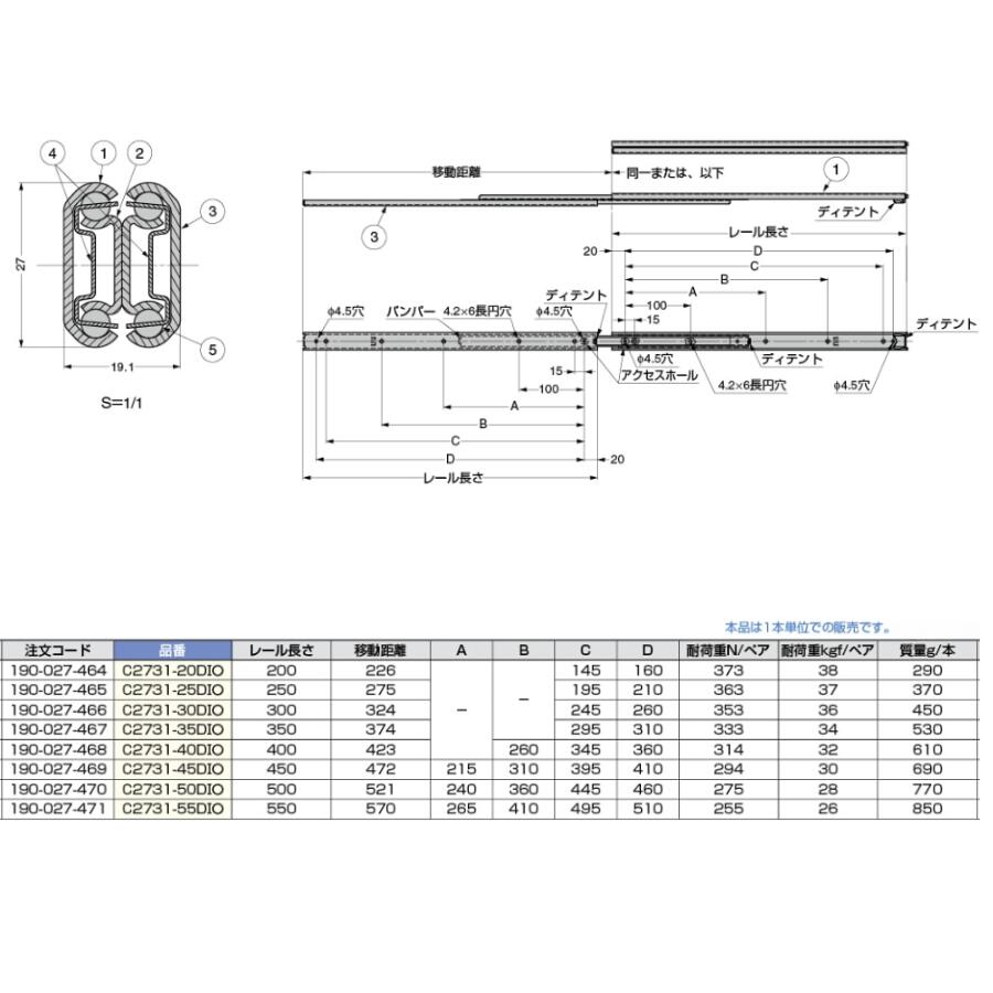 日本アキュライド 株 アキュライド C273120DIO ダブルスライドレール ディテントイ 437-9705 ディテントインアウト アキュライドダブルスライドレール