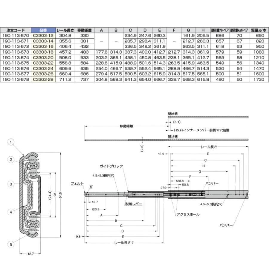 | スライドレール C3303-28 仕様 |