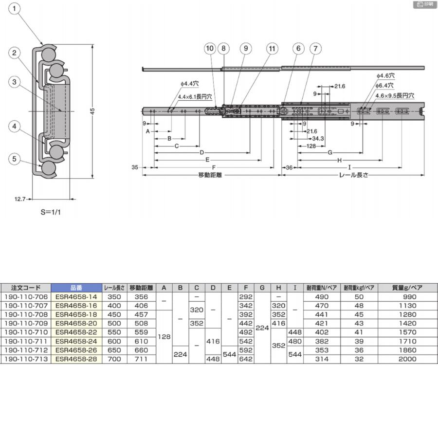 スライドレール ESR4658-18(スガツネ工業)