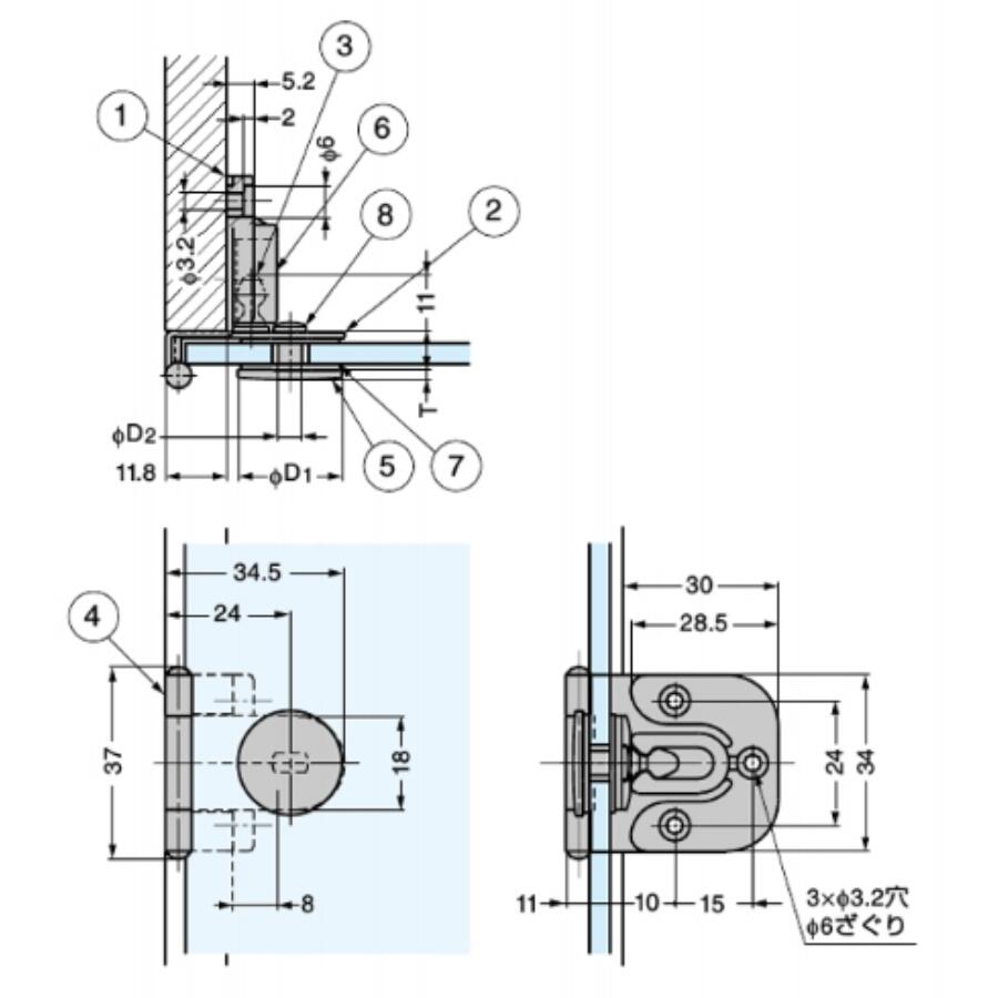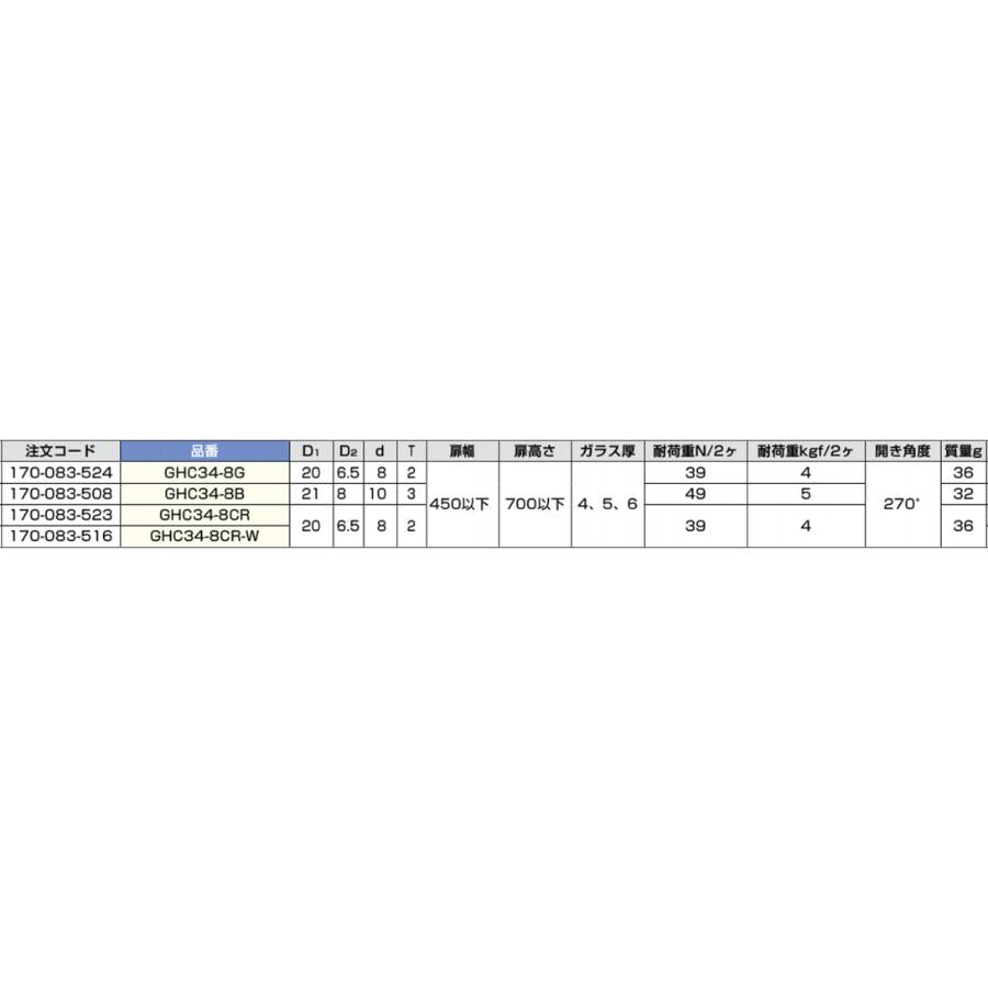 スガツネ工業 Sugatsune ランプ印 キャッチ付 ガラス丁番 GHC34-8型 かぶせ扉用 GHC34-8B 黒