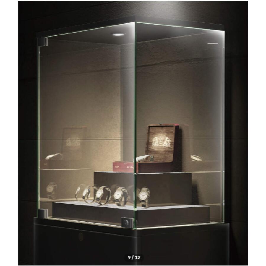 ガラスショーケースやインセット扉の丁番として使用可能。高級感を求める展示や商業施設での利用に最適。
