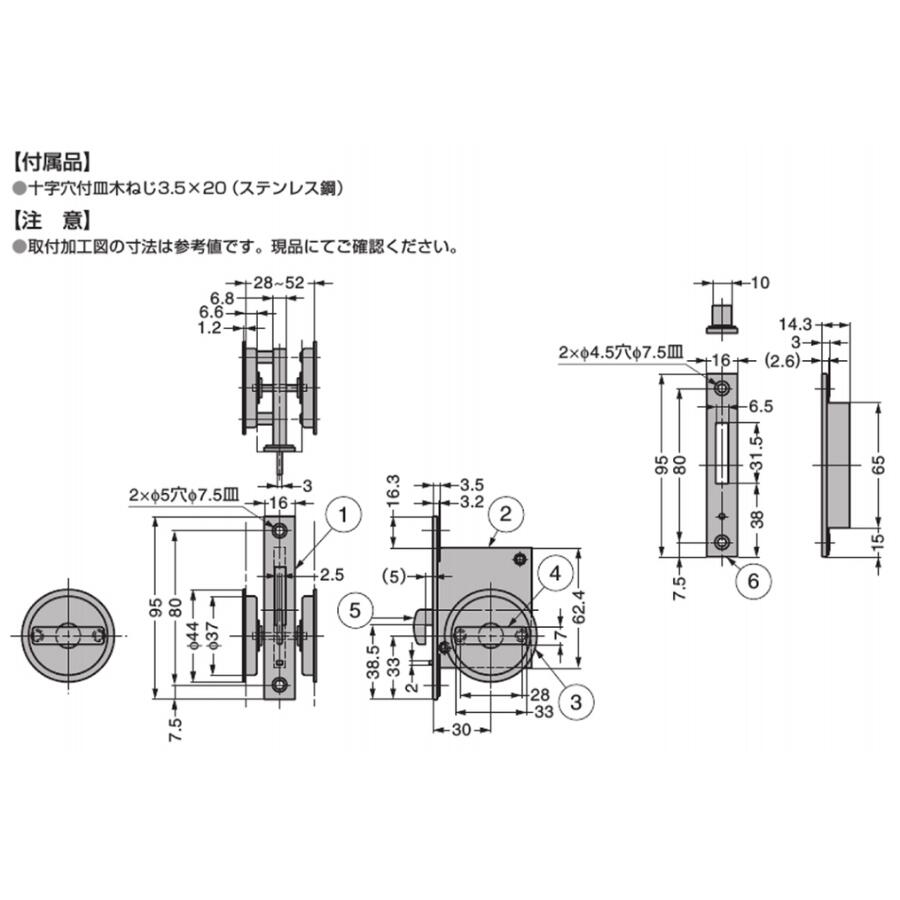 - 付属品:十字穴付皿木ねじ3.5×20(ステンレス鋼)