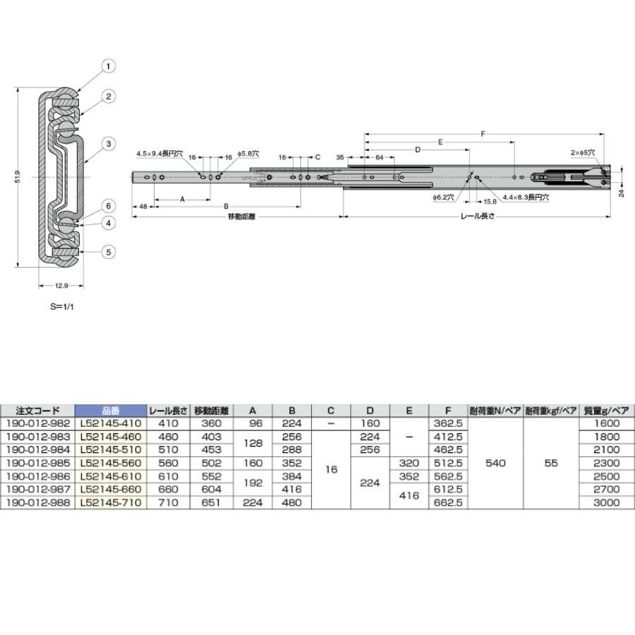 スガツネ工業 スライドレール 190012988 L52145-710スライドレール L52145-710