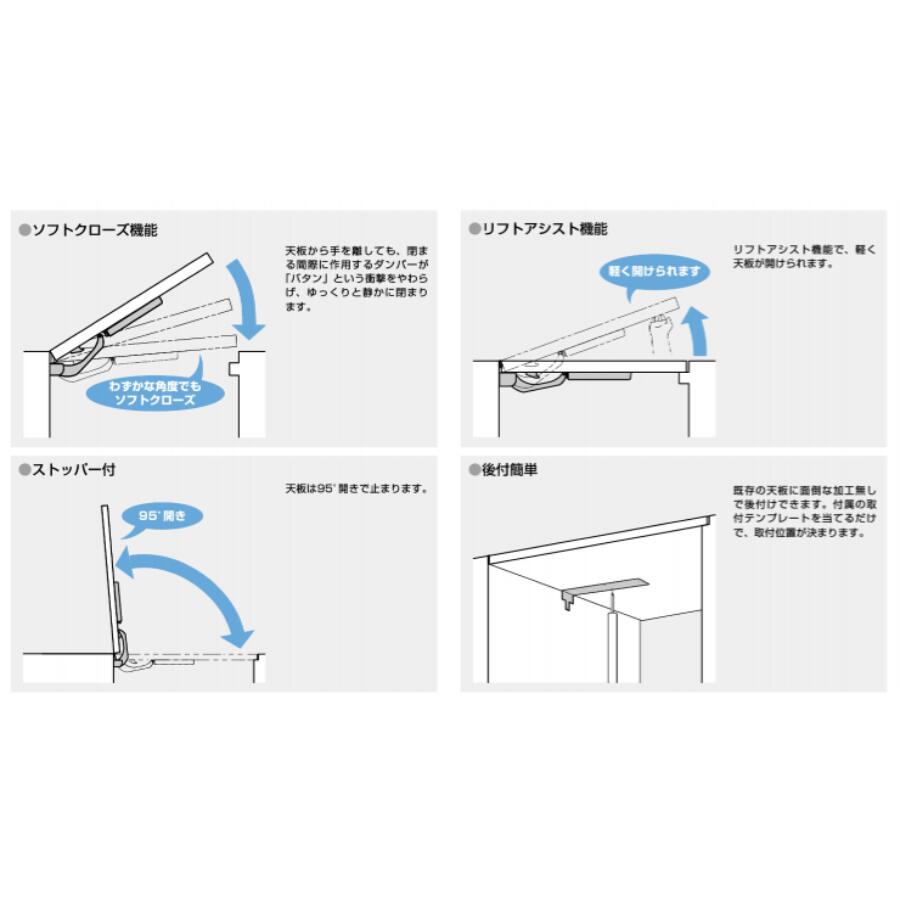 スガツネ工業 LAD-ST-L / ストッパー付 LAMP リフトアシストダンパー リフトアシスト ソフトクローズ 木扉用 板厚15-40mm 天板の最大モーメント8.0-10.5N・m/1セット 170-033-213