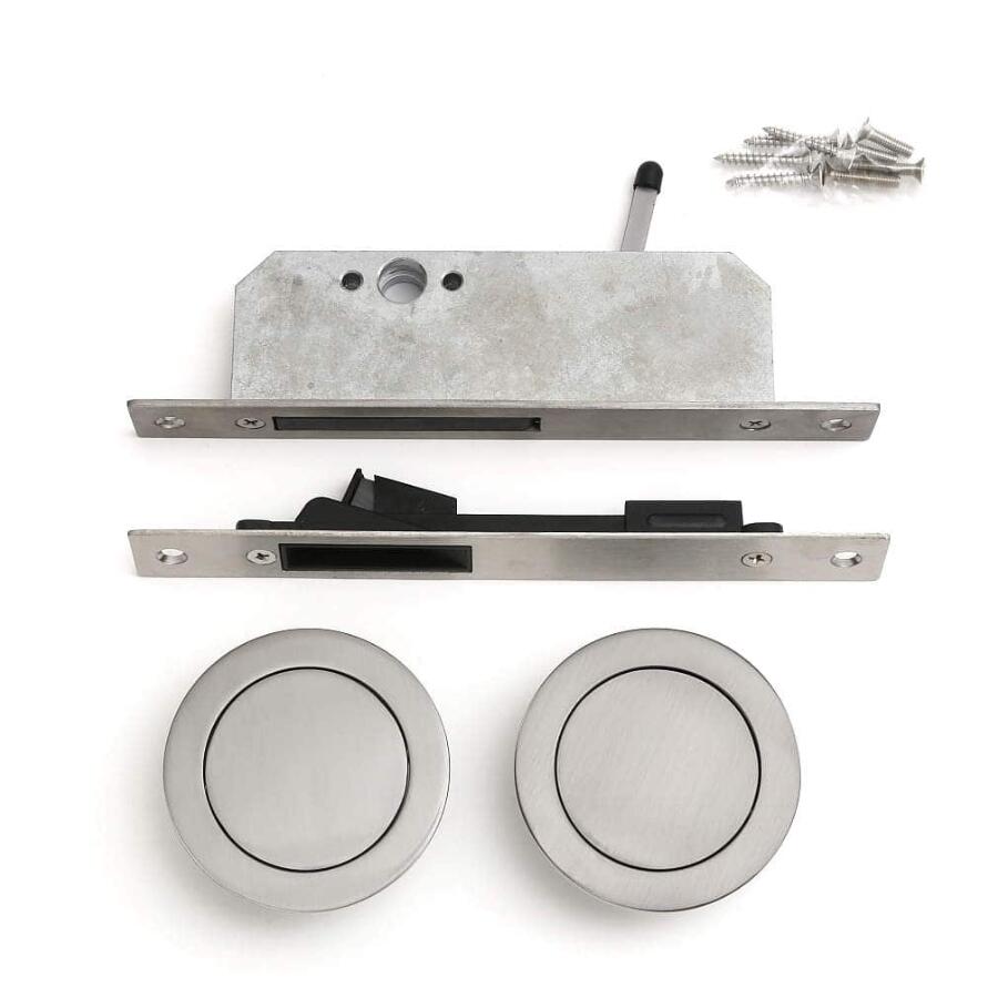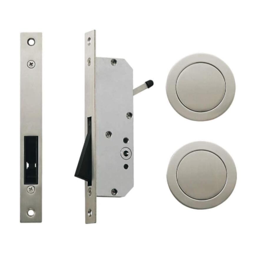 マグネットラッチハンドル LAMP MLH-SN 亜鉛合金/ステンレス鋼 サテンニッケルめっき/サテン仕上 質量g:757 静音タイプ フラット 丸型 260-024-534