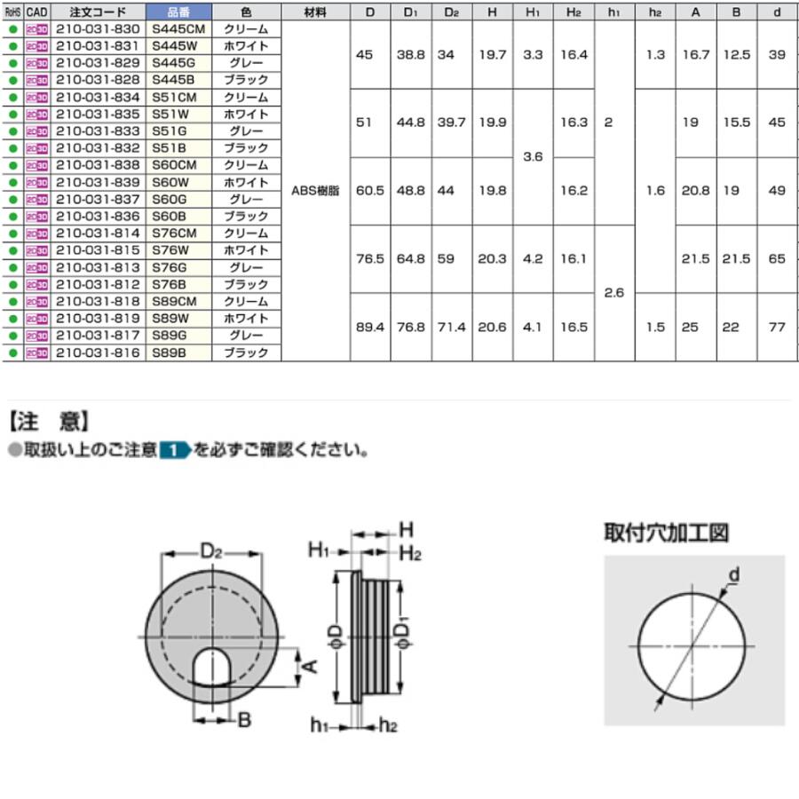 スガツネ工業 S445G 210031829 S445G配線孔キャップ丸型