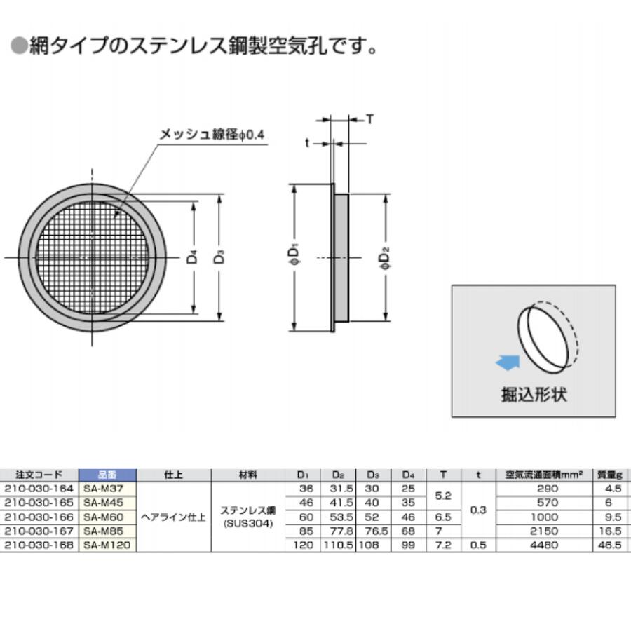 スガツネ工業 SAM37 210030164 SA-M37ステンレス鋼製空気孔481-1330 LAMP SUGATSUNE
