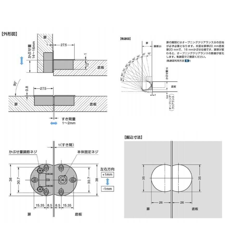 スガツネ工業 ドロップ丁番SDH-001型 SDH-001 ニッケルめっき