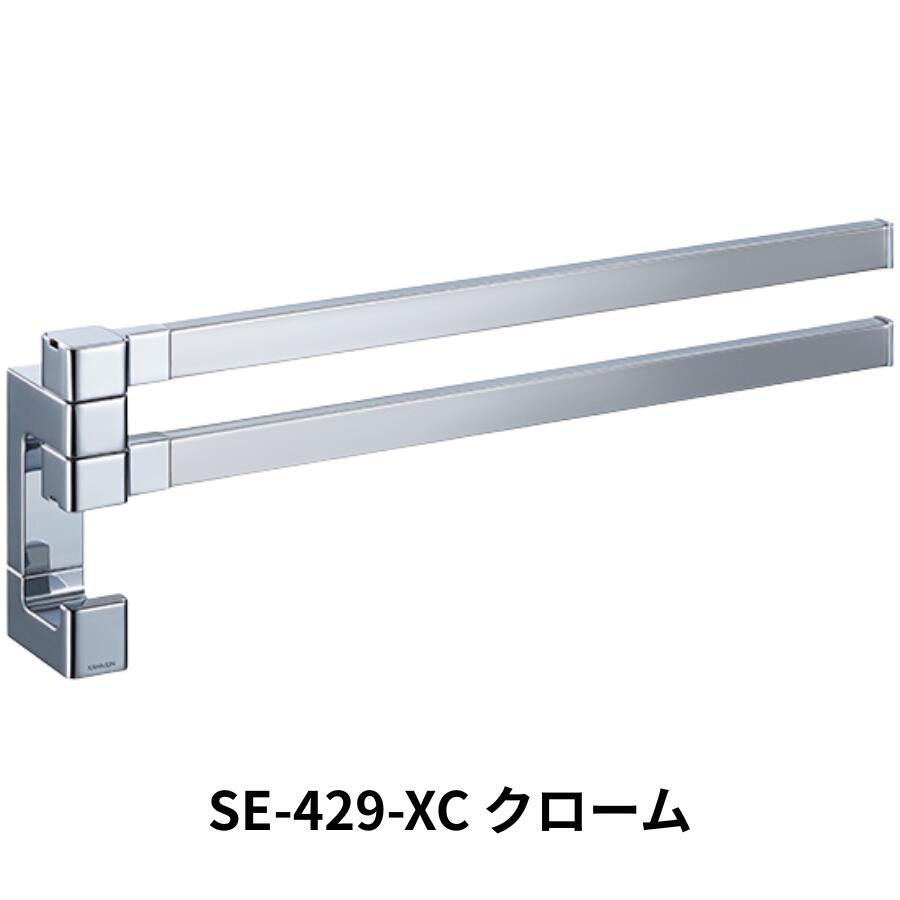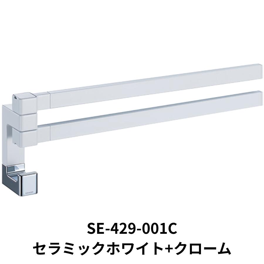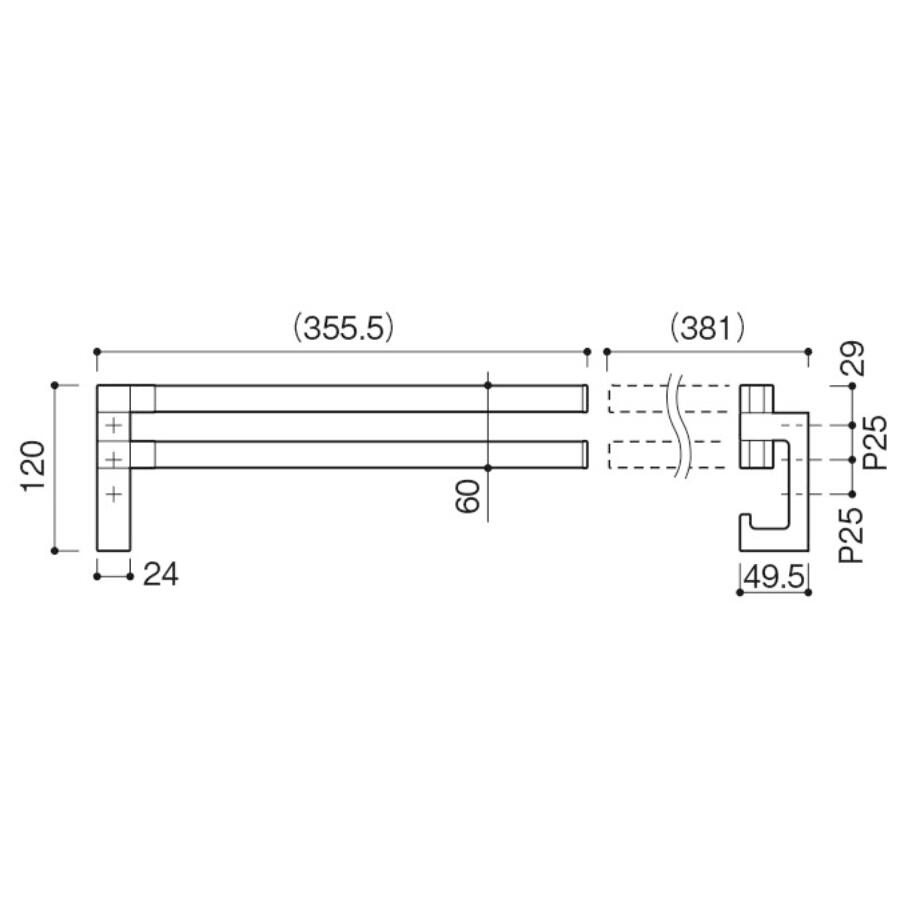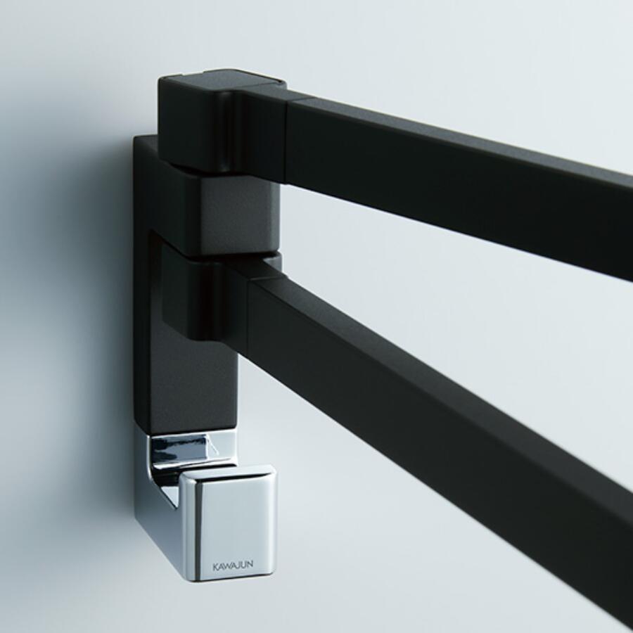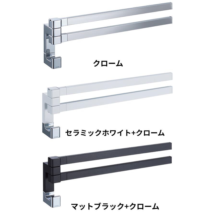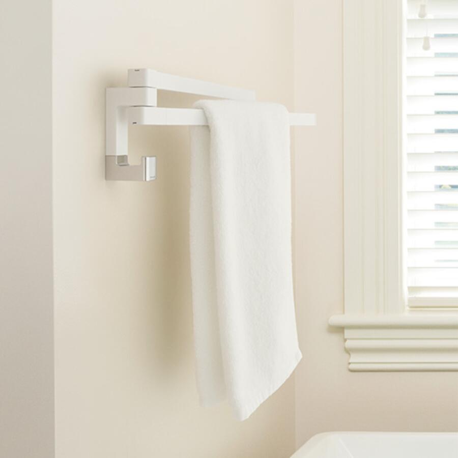 スイングする2本のアームとフックがついたタオルレール