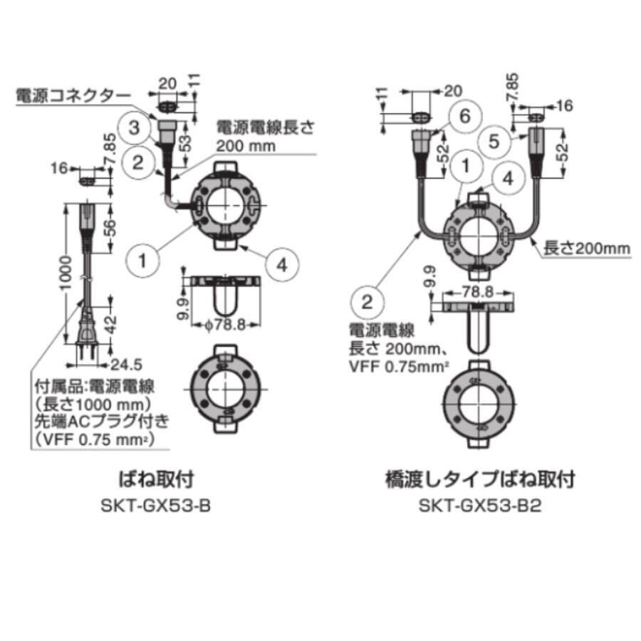 SL-GX53型、GX53-5型専用 GX53口金ソケット SKT-GX53型 ばね/ねじ/橋渡しタイプ スガツネ工業