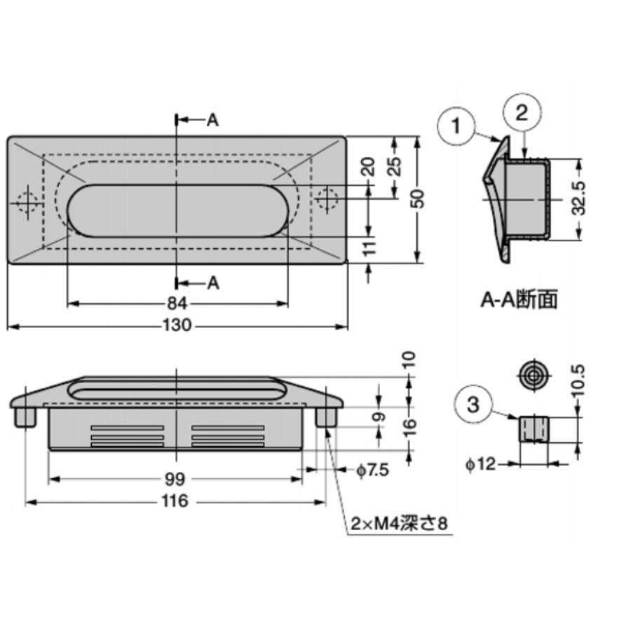 スガツネ工業 埋込取手UTZ型UTZ-130 UTZ-130WB UTZ-130SCP UTZ-130BL